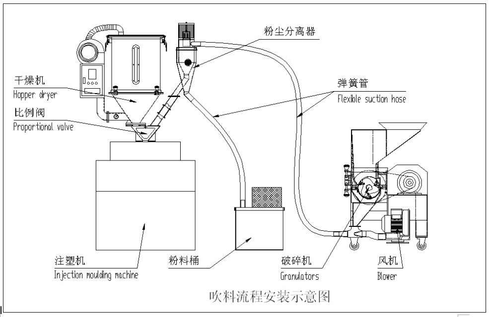 短时间的回收,避免污染,混料所造成的不良率,可减少塑料、人工、管理、仓储,购料资金的浪费与损耗